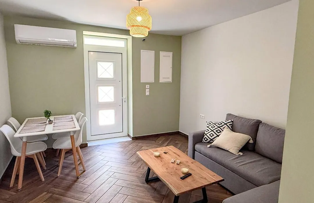 This 75 m² apartment provides an equipped kitchenette with a toaster and an oven. Vasou bus stop lies about 800 metres away.